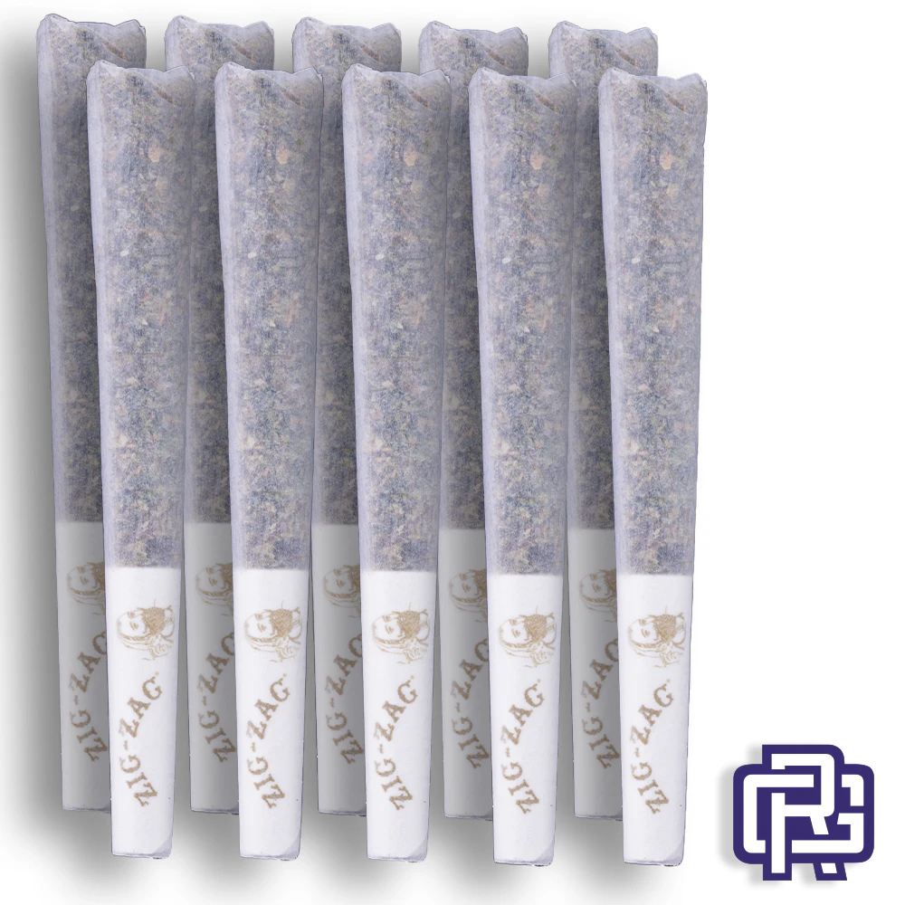 Indica | Genetics: Layer Cake x Wedding Cake | Cultivator: Derby's Farm | Inputs: Single Source, Indoor-Grown, From 100% Whole Nugs/0% Shake or Trim | Each strain-specific pre-roll pack contains ten (10) 0.5g pre-rolls for a total of 5 grams of usable cannabis. | 30.81% Total Active Cannabinoids (TAC)