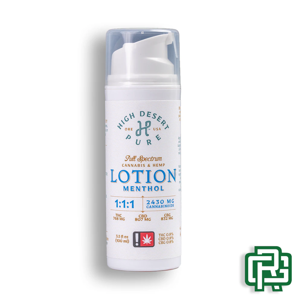 1:1:1 THC:CBD:CBG | This rich, hydrating lotion feels smooth to the touch and never leaves an oily residue behind. Loaded with 2450 mg of Total Active Cannabinoids (820mg each of THC, CBD, & CBG), this lotion has some of the highest THC/CBD/CBG numbers on the market. We include mango butter, shea butter, safflower oil, and a few other goodies to moisturize skin and fight free radicals without clogging pores. Available in an airless 100 ml (3.5 oz) dispenser.