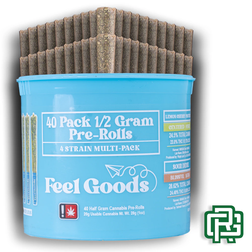 Variety | One (1) Hybrid strain (Sunny Scoops), two (2) Sativa strains (Sherbanger #22 & Grapefruit Diesel), one (1) Indica strain (Frosted Cherry Cookies) | Cultivators: New Frontier (SS), Slims TopShelf (S#22), 5150 Cannabis (GD), Makru (FCC) | Each variety pre-roll pack contains ten (10) half gram (0.5g) pre-rolls of each strain for a total of twenty (20) grams of usable cannabis.